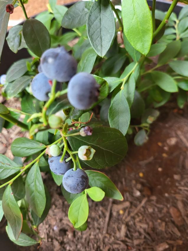 Just waiting for my blueberries to turn blue and my strawberry plants to start flowering!
